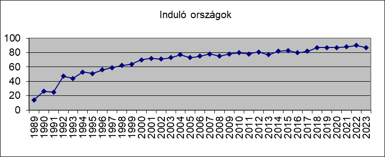 1992-től az IOI már valódi világverseny: mind az öt földrész és 51 ország képviseltette magát 171 versenyzővel. (http://stats.ioinformatics.org/olympiads/)