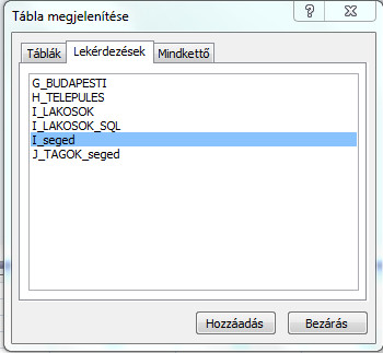 27. ábra: Az I_seged nevű lekérdezés felhasználása egy másik lekérdezés elkészítéséhez