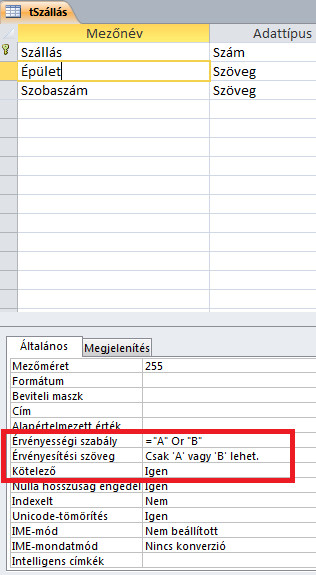 2. ábra: Érvényességi szabály, érvényesítési szöveg és kötelezőség beállítása