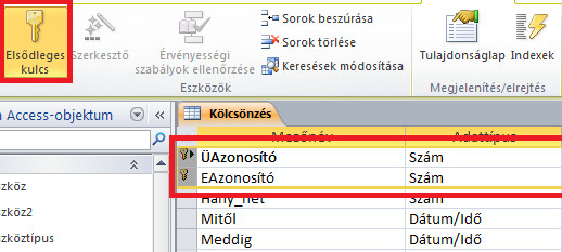 6. ábra: Több mezőből álló elsődleges kulcs készítése