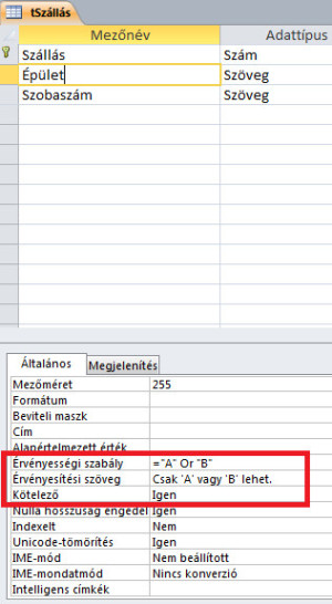 Bizonyos esetekben szükségünk lehet arra, hogy korlátozzuk egy mező tartalmát. Ezt az érvényességi szabályok segítségével oldhatjuk meg.