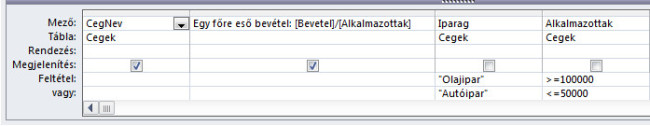 - Amennyiben több mezőre vonatkoznak feltételek, úgy végig kell gondolnunk, hogy a feltételek között logikai ÉS vagy logikai VAGY kapcsolat szerepel. Amennyiben a feltételek között logikai ÉS kapcsolat van, akkor az egyes mezőkre vonatkozó feltételeknek egy sorba kell kerülniük a QBE rácson. Ha azonban logikai VAGY kapcsolat van az egyes mezők feltételei között, akkor a feltételeknek külön sorba kell kerülniük.