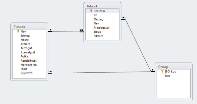 Ebben a feladatban űrhajók és küldetéseik, valamint az űrhajótípusok adatait tároló adatbázist kell készítenünk.